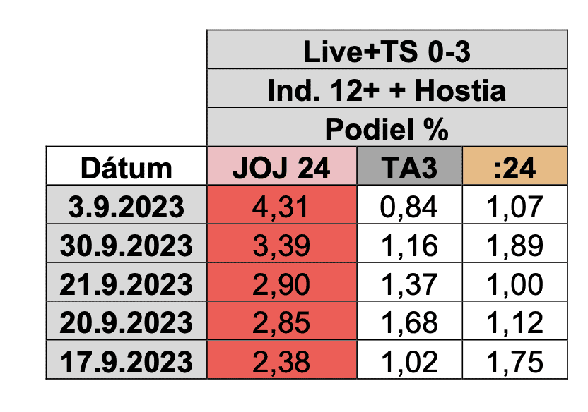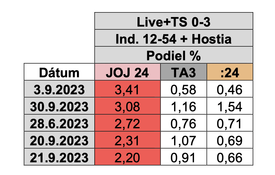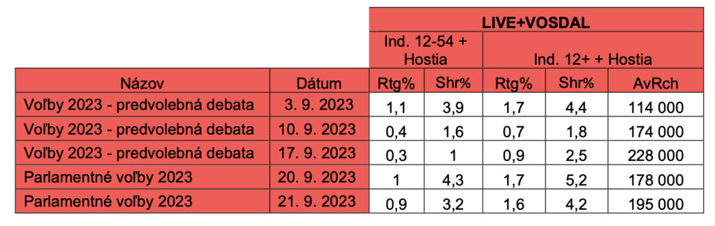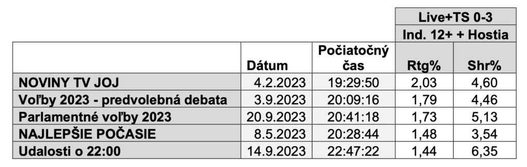 Prehľad sledovanosti predvolebného vysielania JOJ 24: