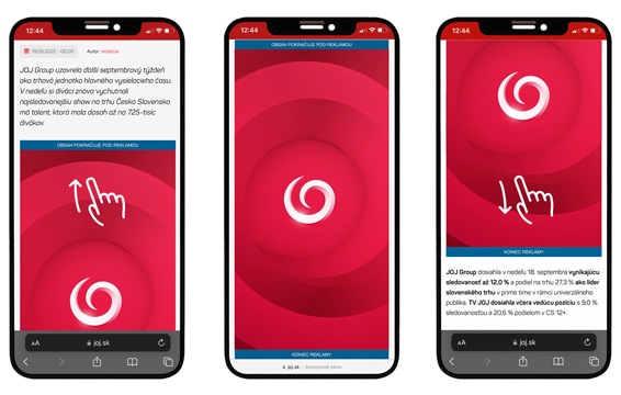 Prémiový mobilný formát reklamy, ktorý funguje na princípe posúvania stránky (článku), pričom užívateľ postupne scrollovaním odkrýva samotný reklamný obsah. Plne odkrytý zaberá takmer celú obrazovku. Je to náš najväčší mobilný reklamný formát s vysokou pútavosťou.