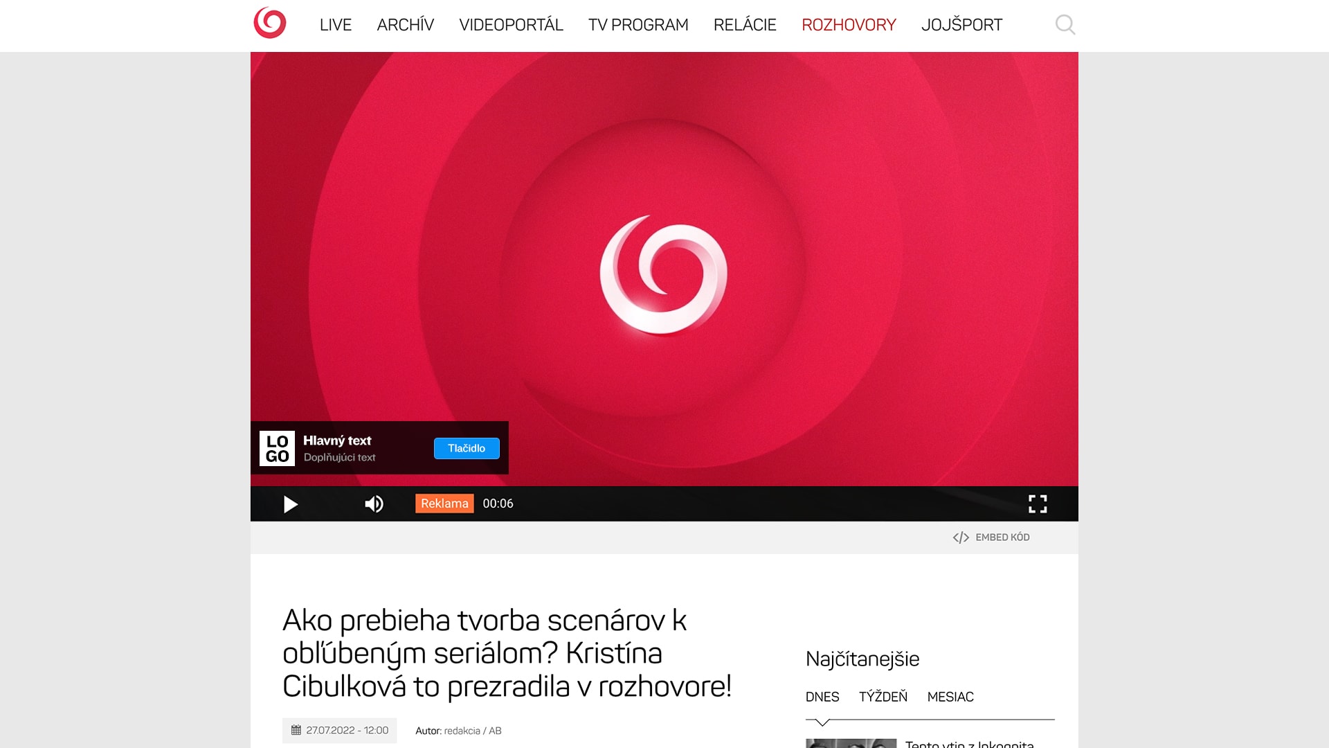 Krátky reklamný break v top programoch, max. jedenkrát v hodine.